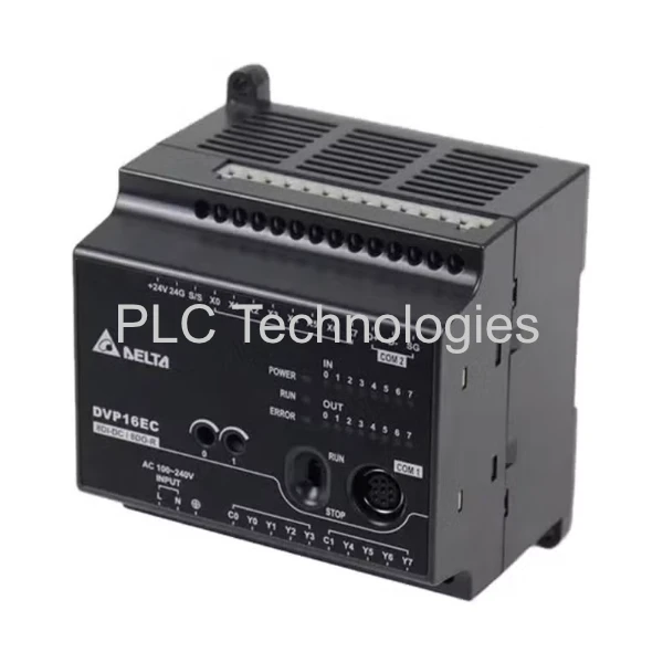 The Delta DVP16EC00R3 PLC is an economical and compact programmable logic controller (PLC) designed for basic sequential control and communication monitoring tasks.It supports 10 to 60 I/O points and offers a program capacity of 4k steps, making it suitable for small-scale automation projects.Equipped with built-in RS-232 and RS-485 communication ports (in models with 16 to 60 I/O points), the DVP-EC3 Series supports Modbus ASCII/RTU protocols, facilitating integration with various control devices such as frequency inverters and temperature controllers.Additionally, it features four high-speed counters for applications requiring precise counting capabilities.Typical applications include standalone control units, landscape fountains, and building automation systems.Its cost-effective design and reliable performance make the DVP16EC00R3 PLC a practical choice for users seeking a straightforward PLC solution.